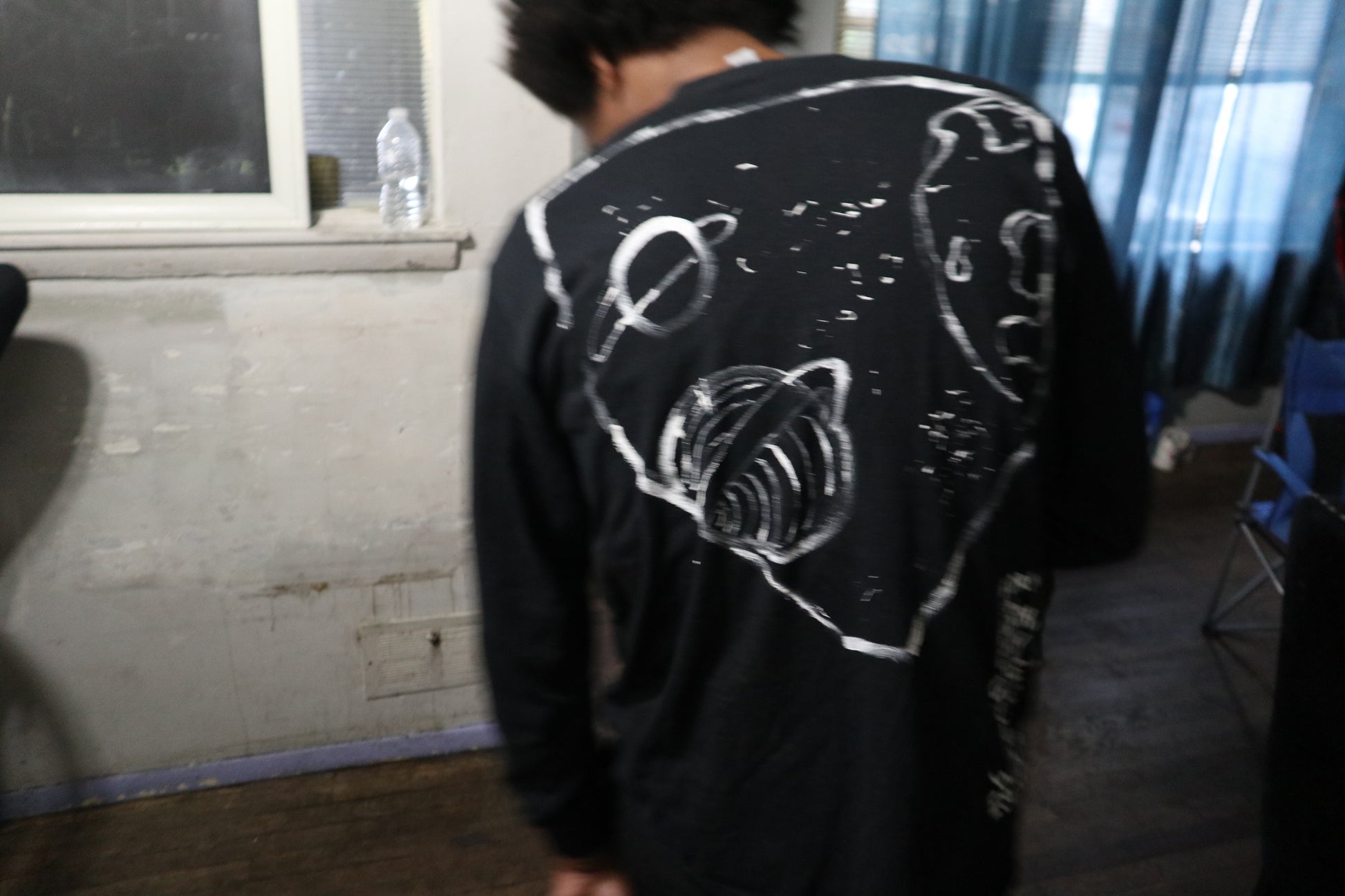 This garment has been sourced from premium outlets throughout the internets, Featured visually is a concept titled "HOME" embodied by multiple celestial surfaces hand painted on the spine of the garment. The "LOGO LONG SLEEVE" also features lyrics fresh off the self titled EP ° Kuselo Mears ° by the musician ElGreatKuse. Then your Artifact is sealed with the LOGO in a vynl finish. All Artifacts are extremely unique and unreplicatible due to the nature of its creation which is adaption.