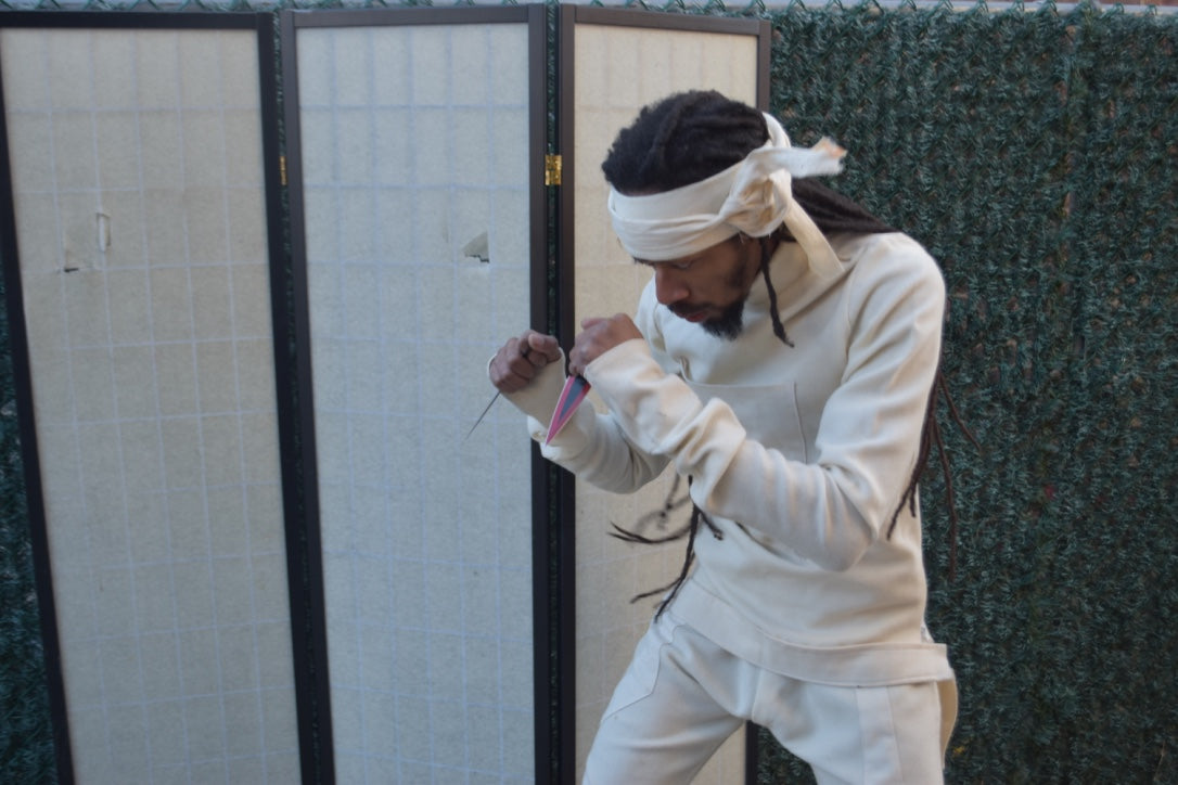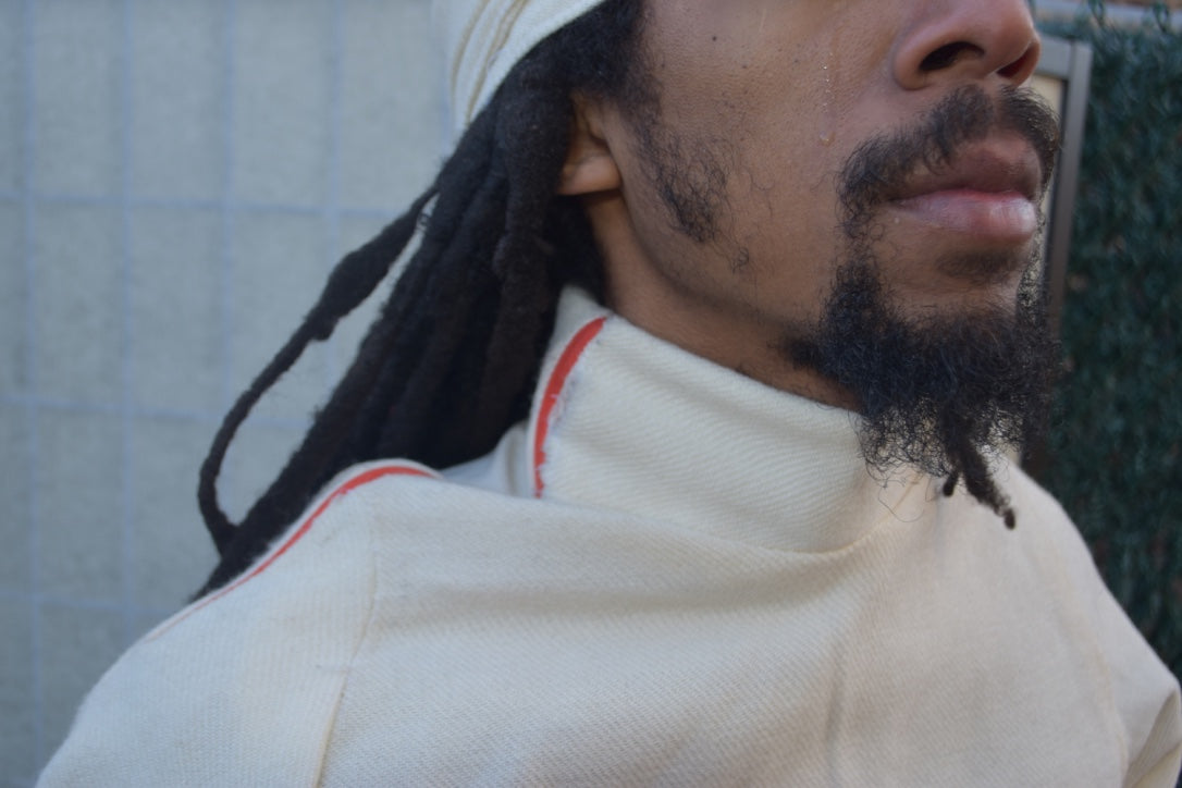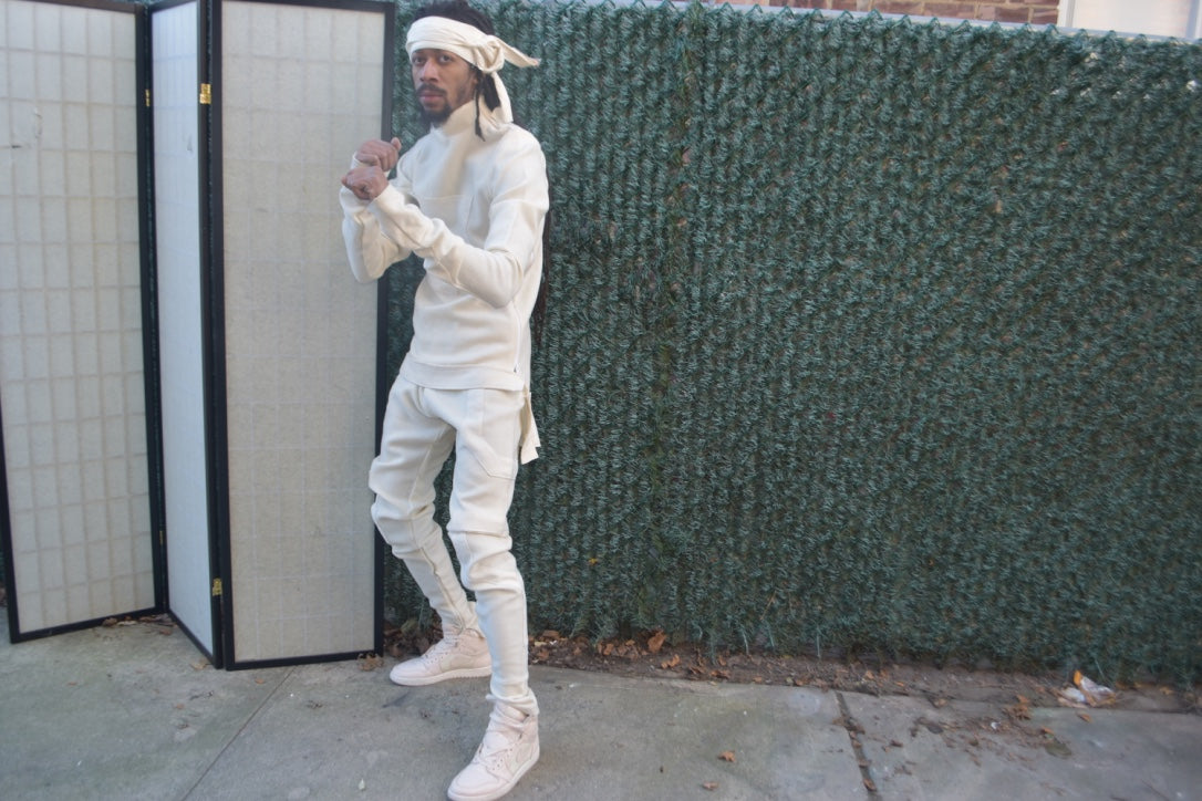 One of None hand crafted jogger set including a pants and a top. The customer is allowed to choose 3 materials to create this vision. All P1 SUIT SETS are made to order with the specific measurements of the purchaser's request.